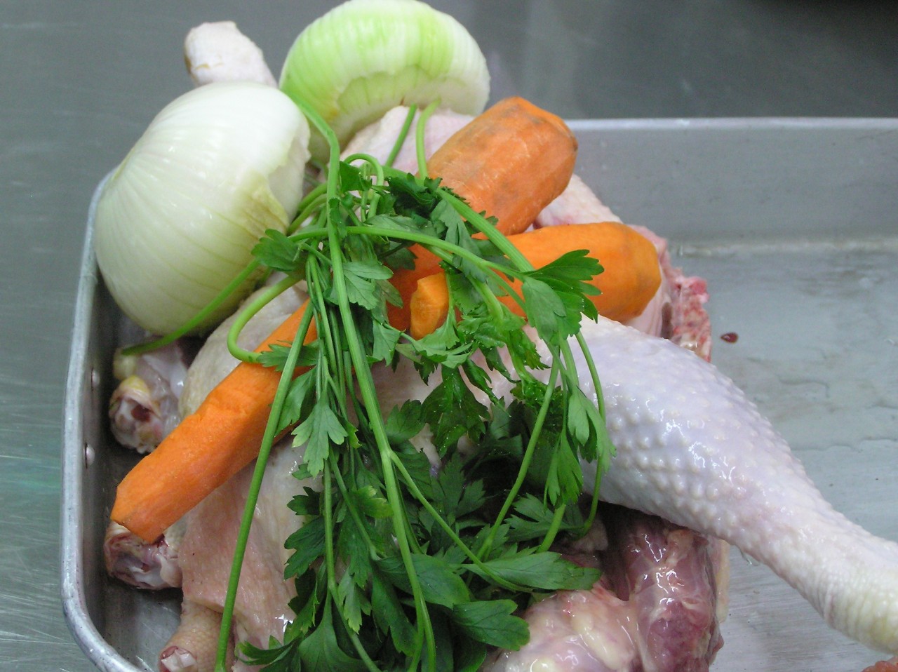 1. Legumes colocados num tabuleiro de inox perfurado que vão ser levados a cozer em forno de convexão no programa de vapor sem adição de sal.